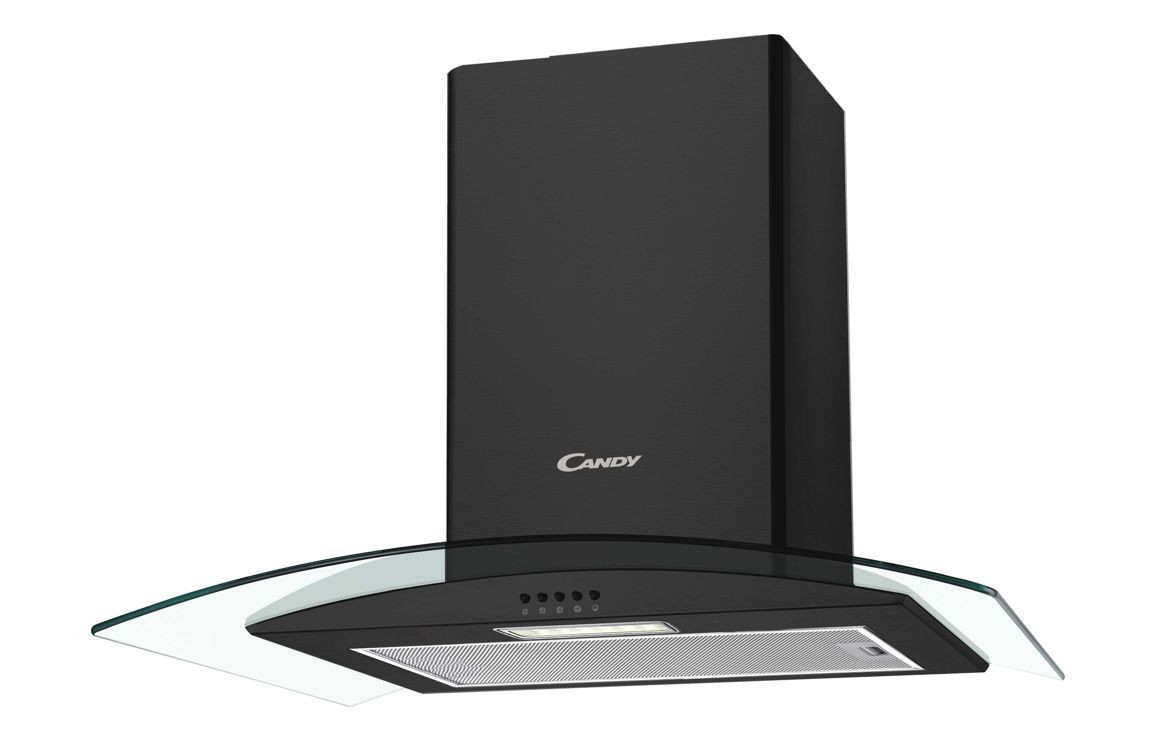 Bring style and performance to your kitchen with the Candy CGM60NN 60cm Curved Glass Chimney Hood in sleek black steel and glass. This modern wall-mounted hood combines elegant design with powerful extraction, making it a great addition to any contemporary cooking space.