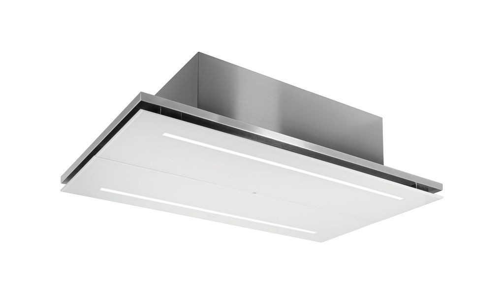 Curated for spacious, contemporary kitchens, the Caple CE1122WH 110cm Ceiling Cooker Hood combines powerful extraction with elegant minimalistic style. Featuring a stainless steel trim with white glass panels, this ceiling hood delivers a refined look that blends beautifully into modern open-plan spaces. With a built-in motor delivering up to 753m³/h extraction, it efficiently removes steam and cooking odours while remaining discreet overhead.