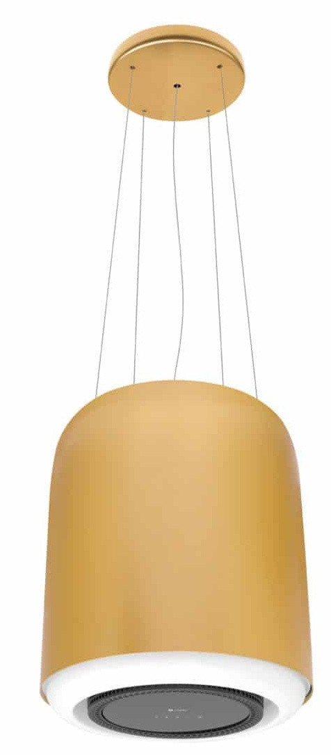 Caple VEL410GD 41 cm Vela Island Cooker Hood in Gold brings stylish extractor fan kitchen performance and a striking contemporary design to island cooking spaces. Its painted stainless steel finish creates a bold focal point, while touch controls and a remote control let you adjust the three fan speeds with ease. An LED ring light brightens your hob area for better visibility, and the aluminium grease filter helps trap grease for easier cleaning. Adjustable height makes it suitable for both standard and tall ceilings, and this model is designed for recirculation‑only installation with a recirculation kit included for flexible setup.